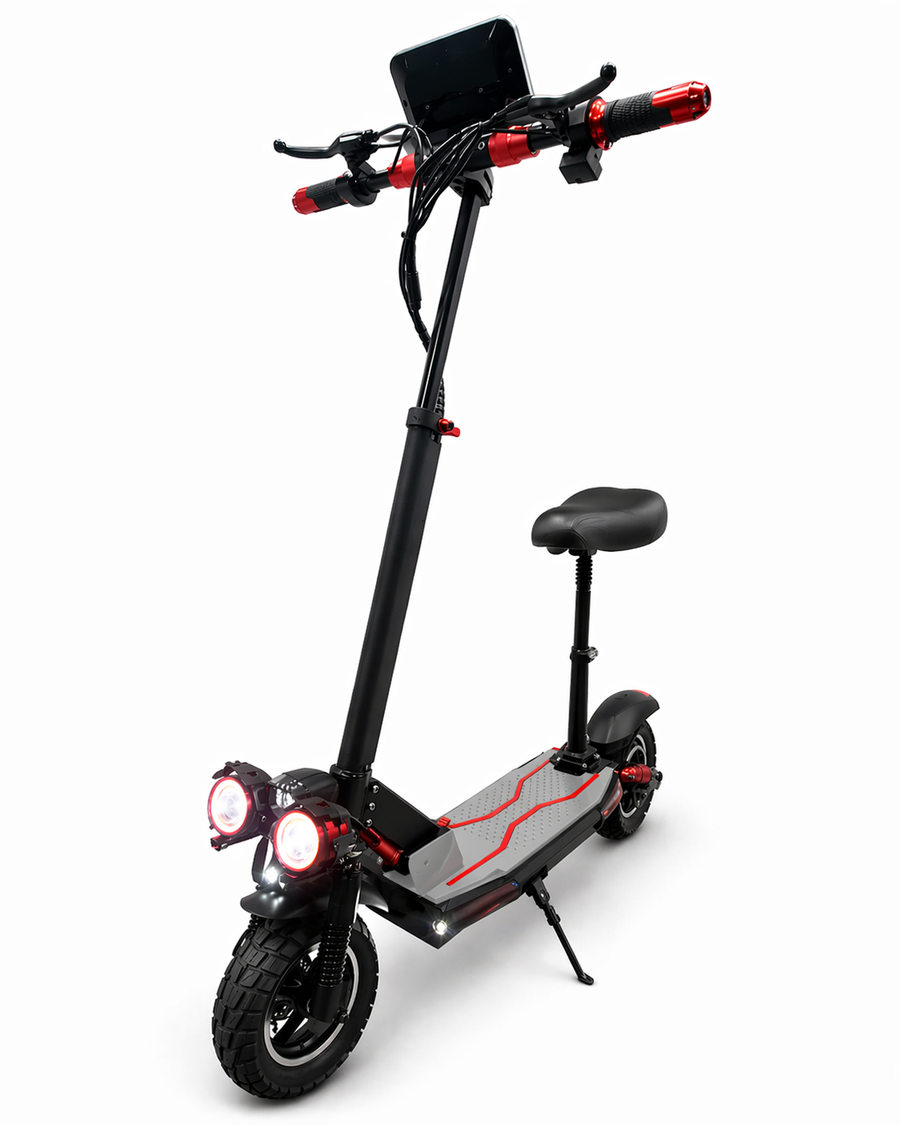 "اكتشف القوة والراحة مع السكوتر الكهربائي الجديد للطرق الوعرة. يتميز بكشافات LED مزدوجة، إطارات عريضة للثبات، ومقعد قابل للتعديل. مثالي للمسافات الطويلة