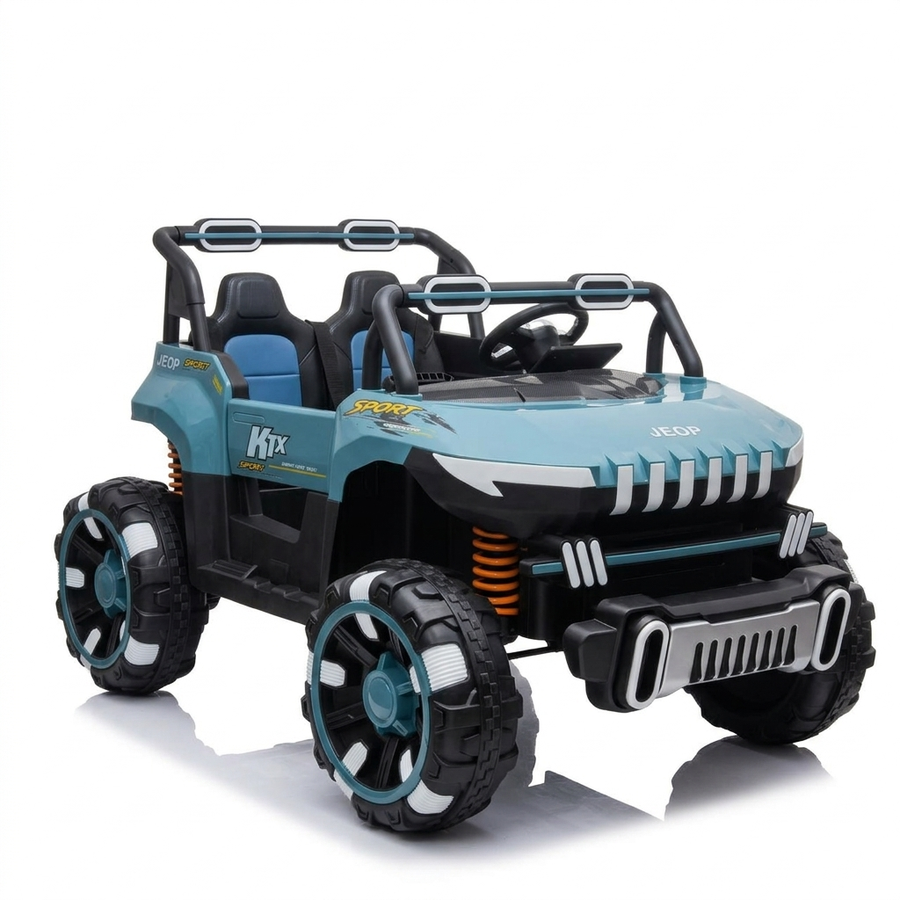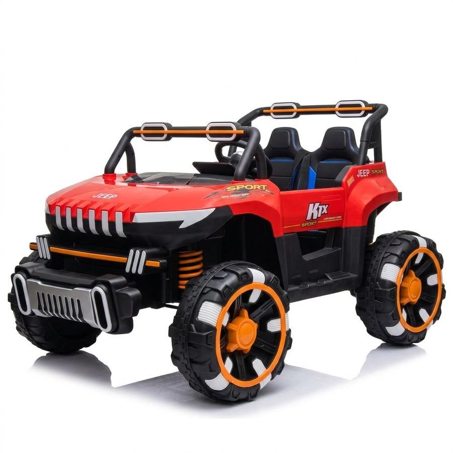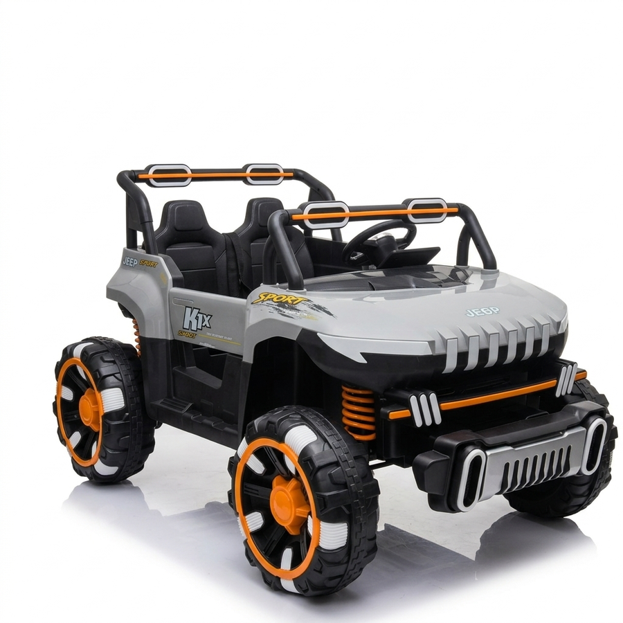 سيارة جيب أطفال K-1X Sport دفع رباعي 4×4، 6 موتور، بطارية 12 فولت، تتحمل 80 كيلو، 2 راكب، رمادي وأحمر وبترولي 🚙🔥